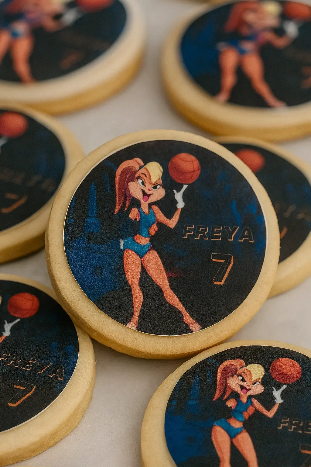 Celebra con estilo. Galletas personalizadas con oblea de arroz y personajes infantiles, ideales para cumpleaños, eventos escolares o piñatas.
